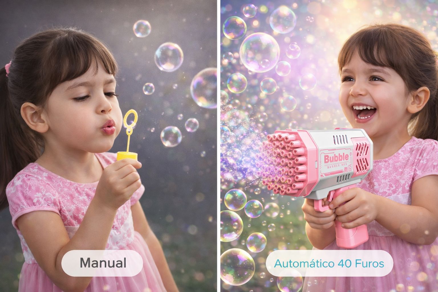 O Lançador de Bolhas Automático 40 Furos não é só um brinquedo.